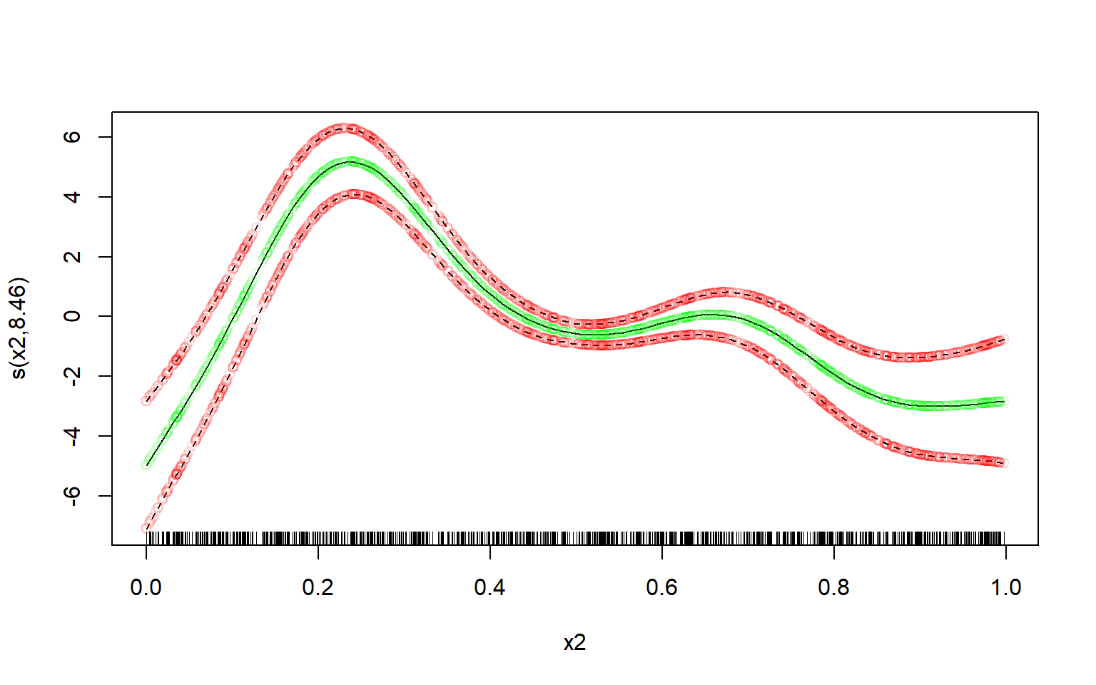 xlab = "x2", ylab = "s(x2)",