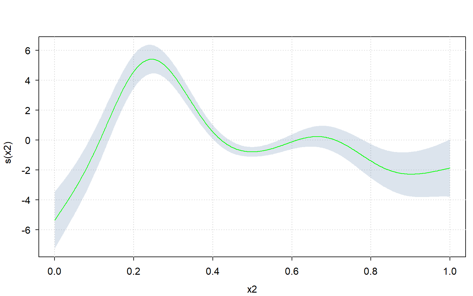 First, letâs create some data, fit a GAM on it, and plot the spline for variable âx2â: